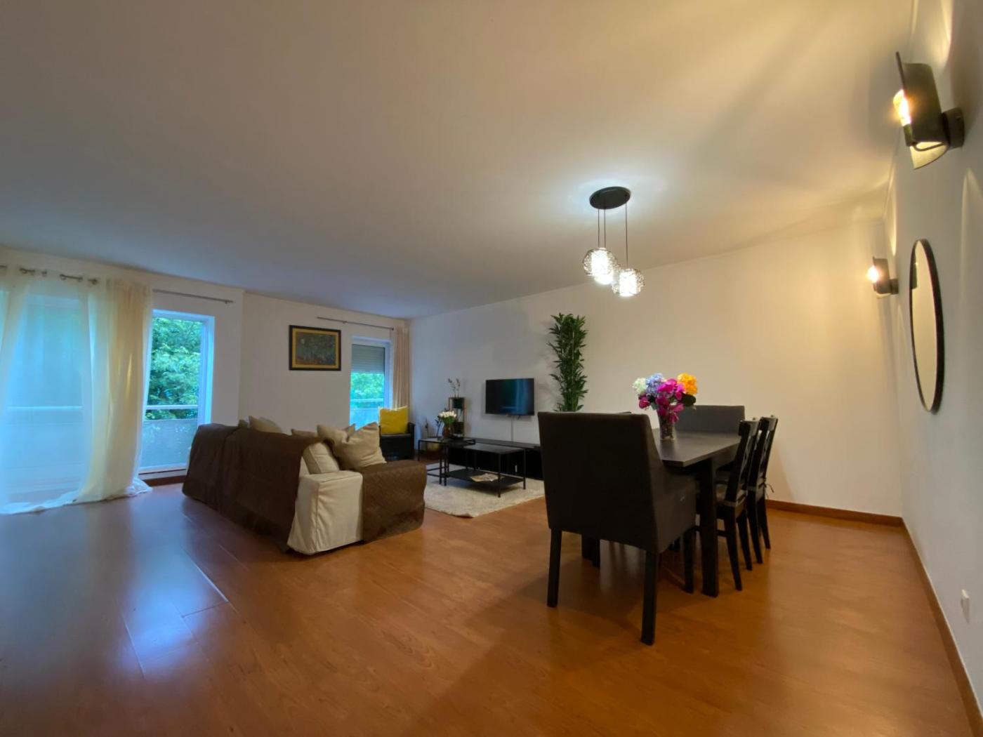 Apartamento com 3 Quartos. This spacious apartment features 1 living room, 3 separate bedrooms and 2 bathrooms with a bath and a shower. Guests can make meals in the kitchen that has a refrigerator, a dishwasher, kitchenware and a microwave. The apartment features a washing machine, a tea and coffee maker, a dining area, a TV, as well as garden views. The unit has 6 beds. ;