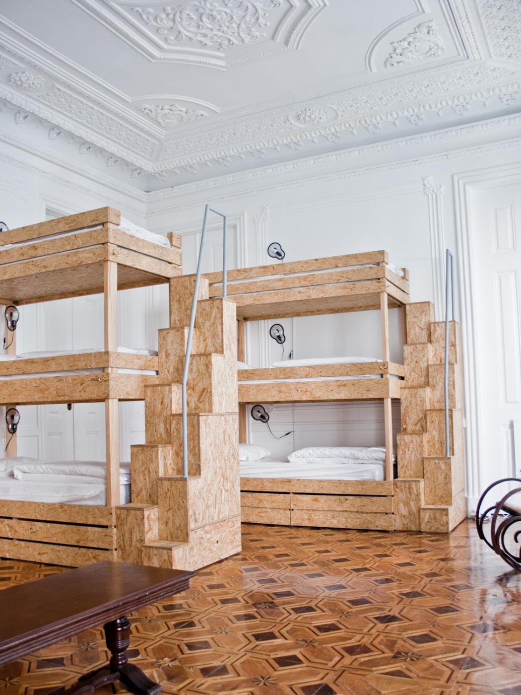 Cama em Dormitório Misto com 6 Camas. Este dormitório apresenta tetos altos e, para cada hóspede, um cartão de acesso eletrónico e um cacifo privado no quarto. Os dormitórios não podem acomodar crianças com menos de 16 anos. ;