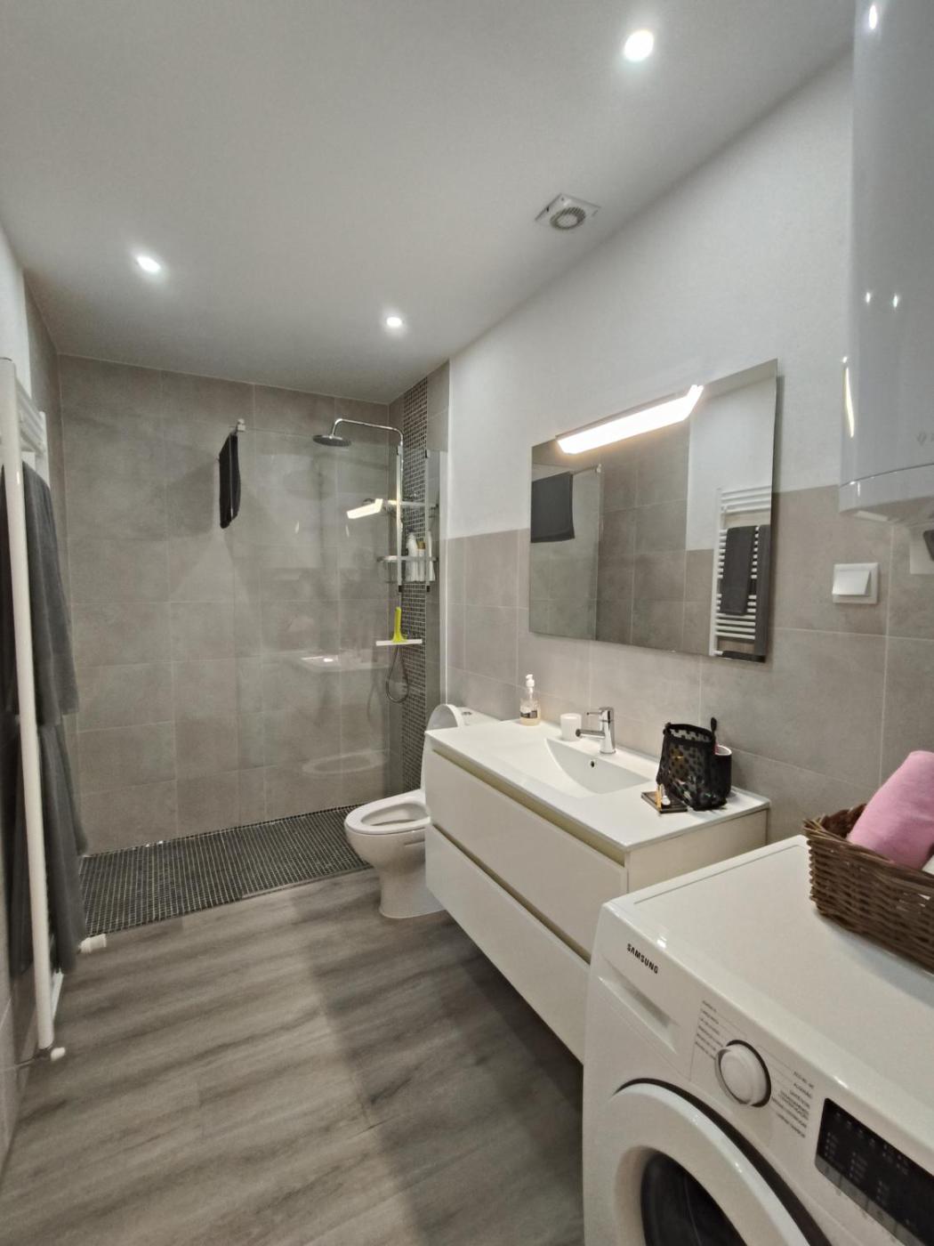 Este apartamento tem 2 quartos, uma televisão com canais por satélite, uma cozinha equipada com frigorífico e máquina de lavar louça, uma máquina de lavar roupa e 2 casas de banho com chuveiro. Toalhas e roupa de cama são providenciadas neste apartamento.